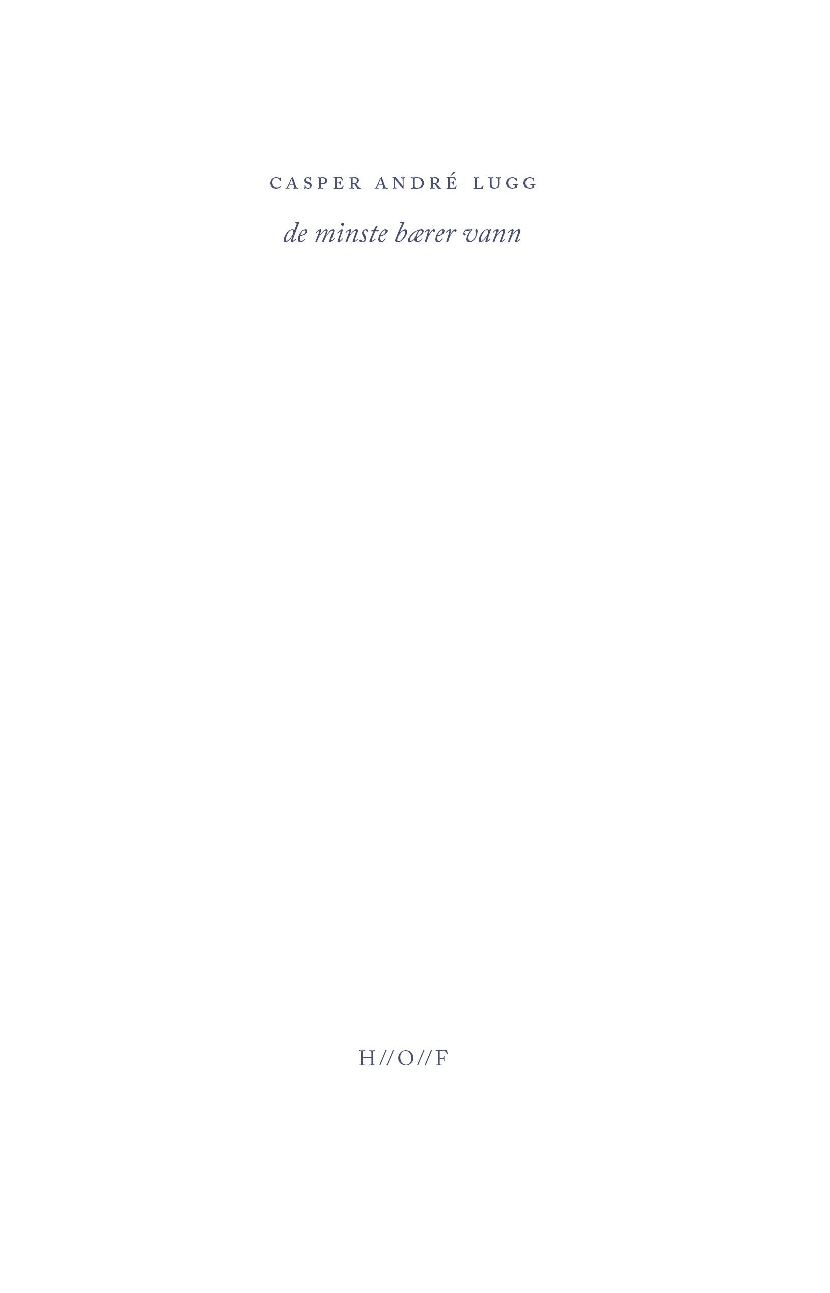Casper André Lugg er født i 1985 og bor på Manstad. Lugg har markert seg som en av de viktigste stemmene i det norske poesifeltet, og har utgitt sju diktsamlinger siden debuten med «Lite rekviem» i 2011. Diktsamlingen «de minste bærer vann» er altså hans åttende bok.