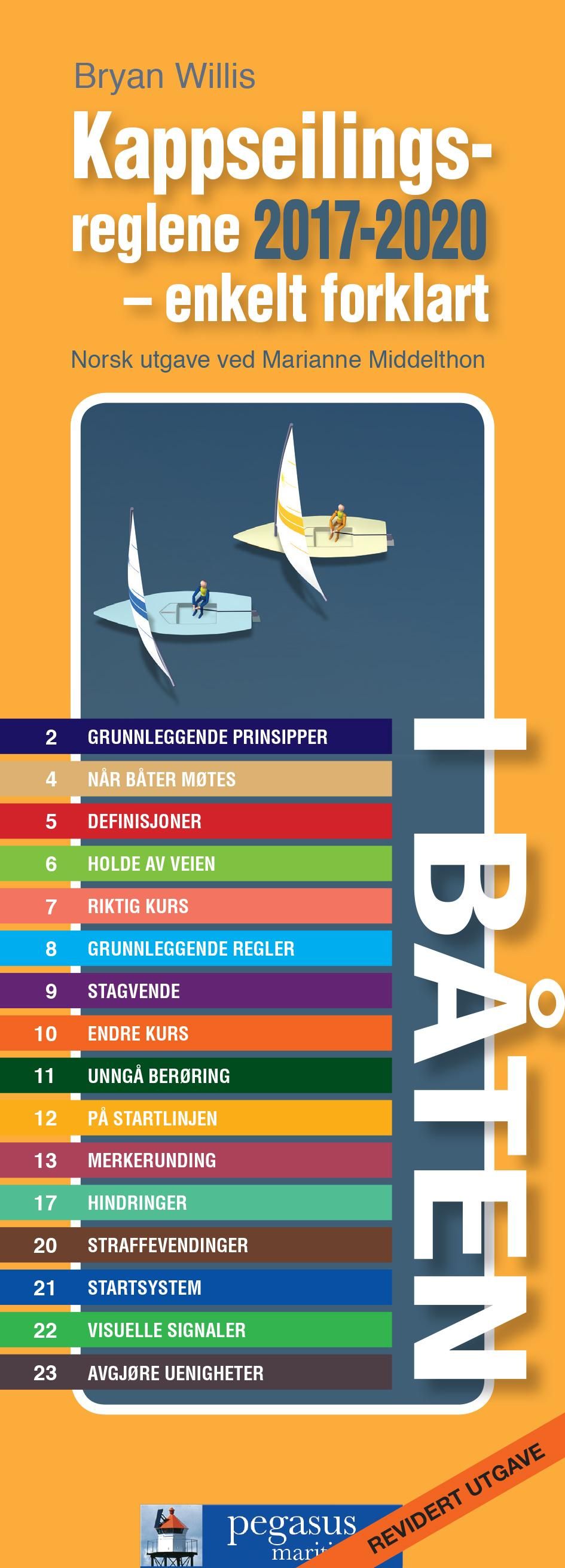 Det internasjonale seilforbundet ISAF vedtar hvert fjerde år nye, reviderte kappseilingsregler som også gjelder i Norge. Denne nyreviderte utgaven er oversatt og tilrettelagt for norske forhold av vår internasjonale regattadommer Marianne Middelthon. Her finner du alt du trenger for regattaer på klubb- og nasjonalt nivå. Dette er den eneste ISAF-godkjente kortutgaven.