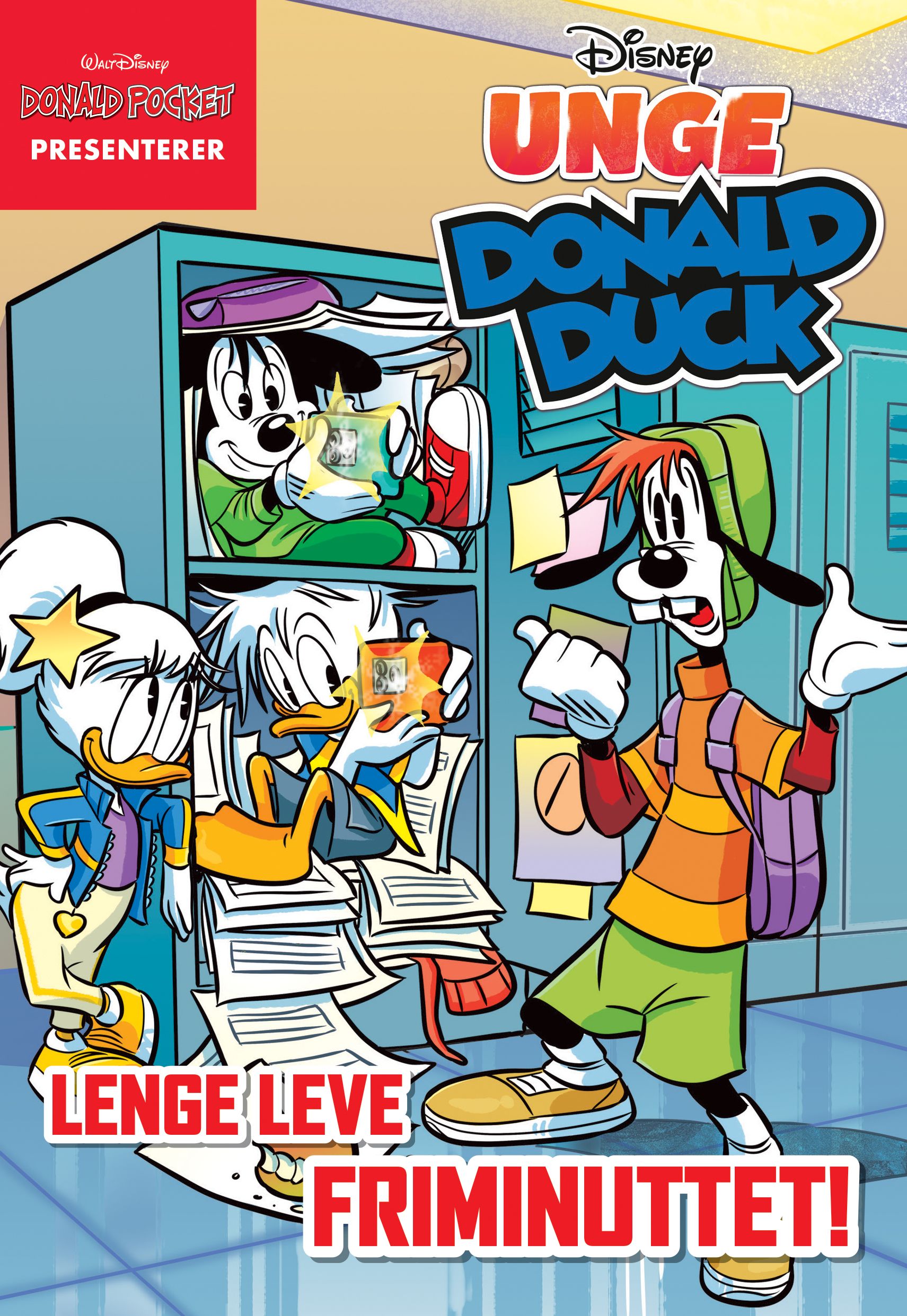 Pugging til prøver, utsetting av lekser, småprat i kantina ... Hverdagen på Hagbart Fisens internatskole er ikke så forskjellig fra hverdagen på andre skoler. I hvert fall ikke på overflaten. Men Donald, Mikke, Dolly, Langbein og de andre elevene som går der, har en tendens til å havne i morsomme og spennende situasjoner som er langt fra vanlige. Hvor mange kvegtyver fanget du på din skole? Eller vant du noen gang VMfinalen i E-sport? Reiste du til Roma og etterforsket kunsttyverier? Sansynligvis ikke. Mellom disse permene, derimot, finner du slike fantastiske eventyr i bøtter og spann!