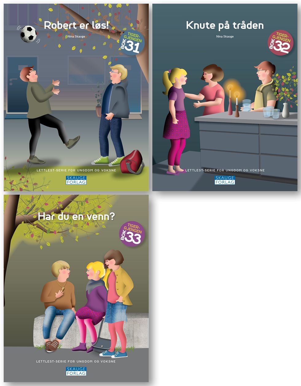 Pakke med tre lettleste og illustrerte hefter (á 32 sider) for ungdom og voksne. Pakke nummer 8 serie om Tigergjengen.