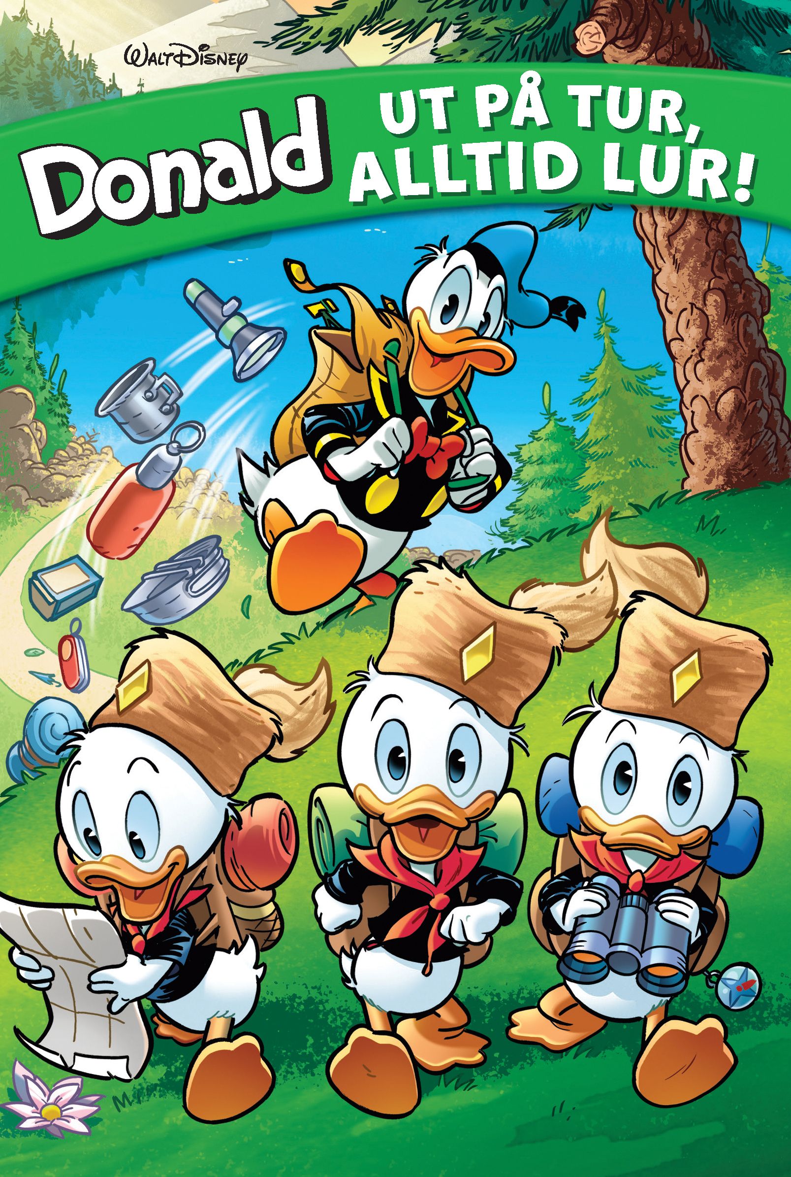Bli med ut på tur! De fremste turgåerne og naturelskerne vi kjenner er naturligvis hakkespettene, men de er ikke de eneste andebyboerne som vet å sette pris på friluftsliv. I denne boka får du også være med Donald og Dolly på en landtur som fører til kraftig oppjusterte tur-ambisjoner for flere, du får bli med Langbein og Klaus Knegg på soppsanking med komplikasjoner, du får se hvordan det går når Mikke og Langbein krymper til ministørrelse og blir uventede allierte til en liten gnom som vil redde skogen han vokter, og du blir kjent med luringen som overtaler Skrue, Rikerud og andre milliardærer til å bli med på en sommerleir han arrangerer i villmarka. Pluss, pluss! Mye moro, med andre ord! I tillegg byr vi på en masse kjekke turtips for deg som får lyst til å snøre på deg turskoene og oppsøke naturen!