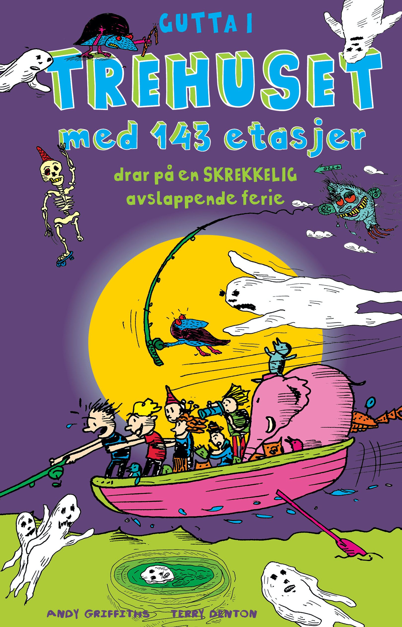 En av Norges mest populære barnebok-serier for 8-12-åringer - en garantert favoritt! Bli med opp i trehuset med 143 etasjer, hvor alt kan skje. Bestselgerne om Gutta i trehuset er morsomme og spennende, lette å lese, og har illustrasjoner på hver side. Serien har solgt over en halv million i Norge, og vil garantert gi leselyst og leseglede. Denne gang har gutta bygd 13 nye etasjer i trehuset, med blant annet egen campingplass. Da passer det jo bra å dra dit på en avslappende ferie! Men alt går ikke helt etter planen. Det vil si: INGENTING går helt etter planen. Og gutta hadde absolutt INGEN planer om at et spøkelse skulle bli med på ferien, eller at en ildsprutende drage skulle dukke opp. Heldigvis er ikke gutta i trehuset redd for NOEN TING. Eller? Gled deg til skrekkelig mye moro!