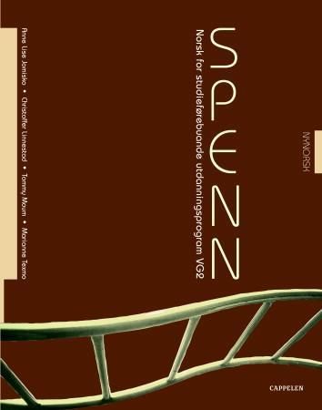 Spenn Vg2 Norsk for studieforberedende utdanningsprogram består av en teoridel og en tekstdel, begge med oppgaver. De to delene har samme omfang. Spenn utgis i parallellutgaver på bokmål og nynorsk og er rikt illustrert. Tekstdelen er lik i de to utgavene. Komponenter: • grunnbok med oppgaver for hvert årstrinn • minigrammatikk for alle tre årene • gratis fagnettsted for elever og lærere Teoridelen inneholder litteraturhistoriske periodeoversikter og forfatterpresentasjoner fra middelalderen til 1870. Norsk litteratur ses i forhold til europeiske strømninger og et utvalg sentrale europeiske tekster. Et eget kapittel tar for seg hvordan forestillingen om ”det norske” ble skapt. Andre sentrale temaer er utviklingstrekk i norsk teksthistorie, sammensatte tekster, språkutvikling og språkpolitikk, og elevenes egen skriving. Tekstdelen er delt i to: tekster fra middelalderen til 1870 og samtidstekster. De eldre tekstene omfatter et bredt utvalg skjønnlitteratur og sakprosa der også sentrale europeiske forfattere er med. Samtidstekstene handler om kulturmøter og kulturkonflikter og ulike sider ved det flerkulturelle Norge. Oppgavene er delt i ulike kategorier, for eksempel Tett på tekst og Videre arbeid. Oppgavene gir gode muligheter til å differensiere undervisningen. Nettsted Spenn har gratis nettsted. Det inneholder lærestoff og øvinger til eleven og ressursstoff til læreren. Nettstedet knytter bok og nett tett sammen.