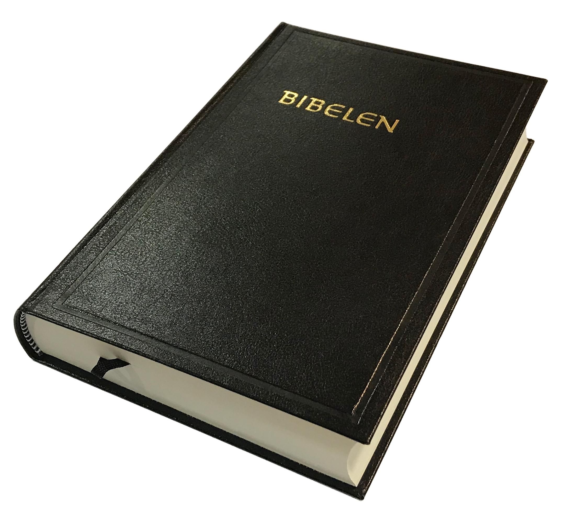 Bibel 1930 i svart skinn med stiv perm.