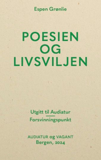 Tradisjonen tilsier at Tor Ulven og Olav Nygard var dødens diktere. Men det er motsatt: De to er livets diktere. I denne boka går Espen Grønlie på jakt etter Ulvens humor og ømhet, på streiftog i Nygards dirrende univers av sang og klang, i kulturkamp med Arne Garborg og på tokt i det ubevisste med poesien som anfører. Poesien og livsviljen er et bidrag til den språklige verdenskonserten.