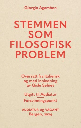 Stemmen som filosofisk problem er Giorgio Agambens tiltredelsesforelesning ved Università statale di Milano fra 2017, senere trykt som appendiks til boken La voce umana (Menneskestemmen, 2023). Her drøfter Agamben forholdet mellom språk og stemme, et problem som har fulgt ham gjennom et halvt århundre. Har mennesket i det hele tatt en egen stemme, slik hestens vrinsking og kattens mjauing er deres stemme? Og er denne særegne menneskestemmen i så fall språket? I Agambens filosofiske optikk får disse tilsynelatende enkle spørsmålene radikale konsekvenser, som angår menneskets uavklarte tilblivelse som menneske, så vel som dyrets og det nakne livets vekselsvise utstøtelse fra og innkapsling i menneskets politiske livsform.