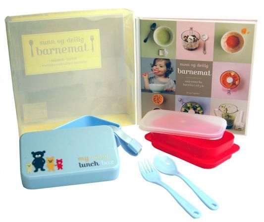Boka inneholder oppskrifter på sunne og varierte retter som passer til barn mellom 0 og 3 år. I tillegg til boka inneholder eska en matboks med en lufttett beholder og ei skei og en gaffel av plast.