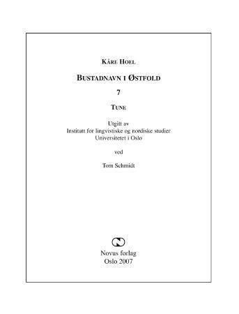 Boka er den syvende av Kåre Hoels etterlatte arbeider om bebyggelsesnavnene i Østfold. Har litteraturliste, kildehenvisninger og registre.