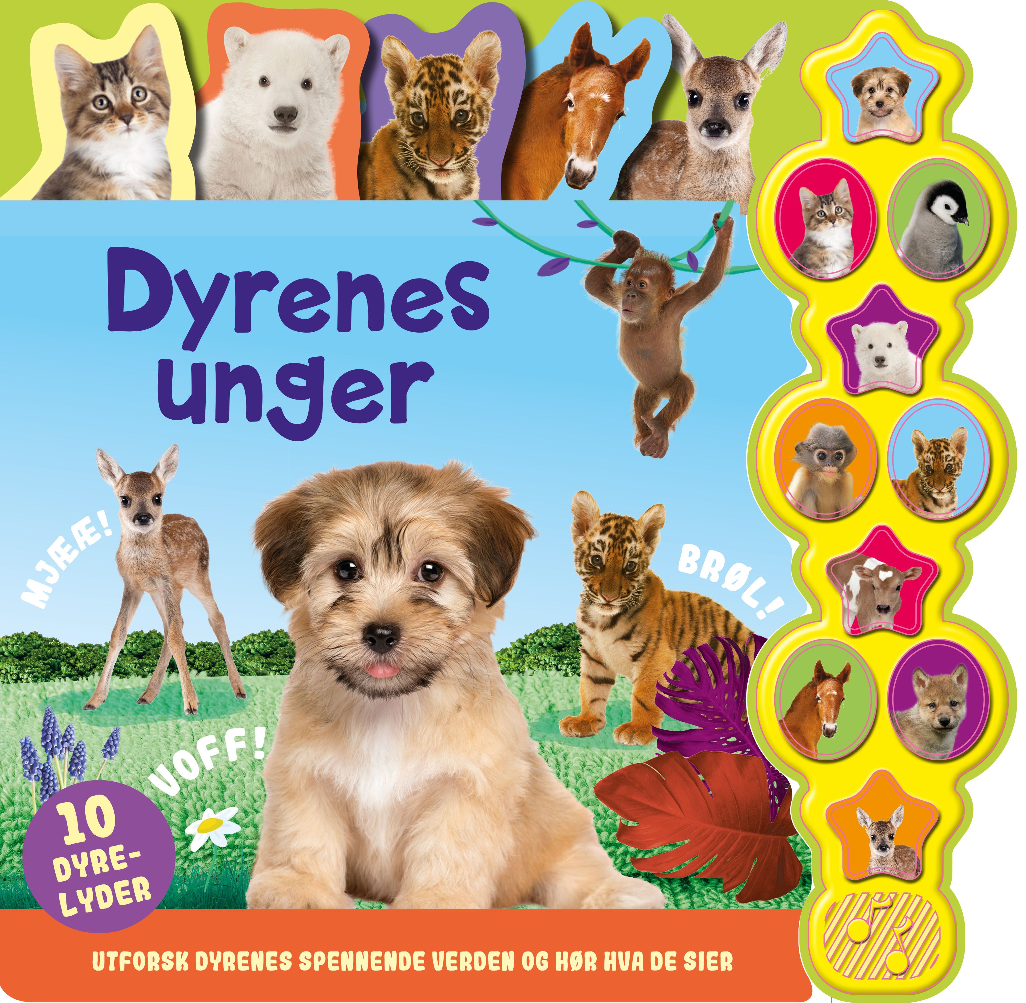 VOFF! MJAU! GRRR! Lær om dyrenes babyer og hvilke lyder de lager. En perfekt bok til å utforske dyrenes verden sammen med barna.