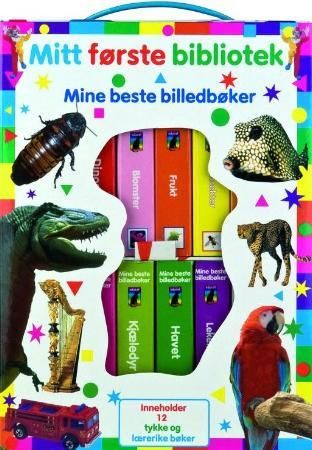 Mitt første bibliotek er en ny serie med lærerike barnebibliotek, bestående av 12 små og tykke pappbøker i en fargerik og praktisk eske. De morsomme bøkene er egnet for utvikling av språk og ordforråd. MINE BESTE BILLEDBØKER består av 12 morsomme pekebøker med bilder og ord som fanger barnets oppmerksomhet, og inneholder disse titlene: Fugler, Dinosaurer, Blomster, Frukt, Insekter, Måltider, Musikkinstrumenter, Sansene våre, Kjæledyr, Havet, Leketøy, Ville dyr.