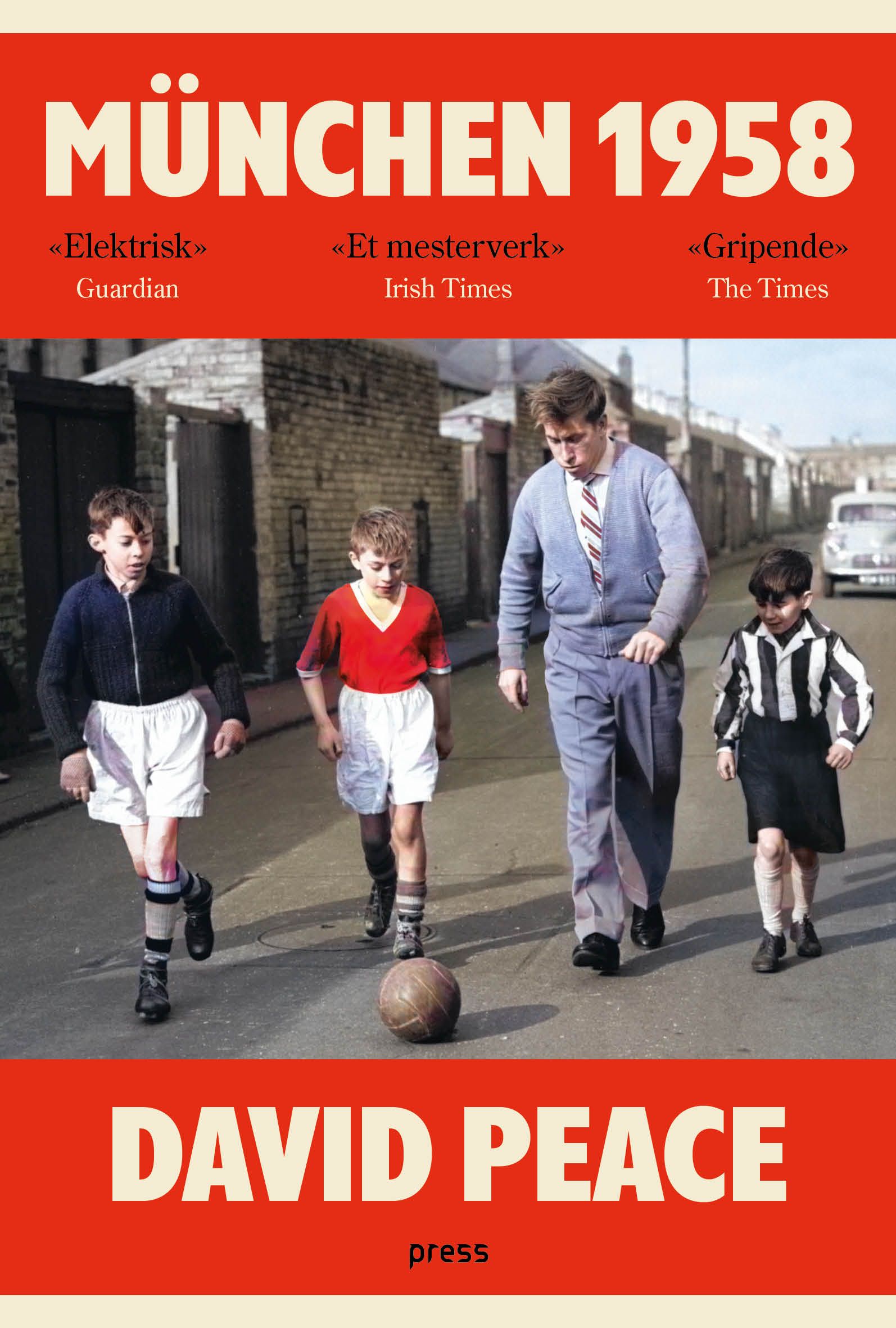 Med sine romaner om Brian Clough i Leeds United (Fordømte Leeds) og Bill Shankly i Liverpool (Rød eller død) har David Peace klart det umulige: Å lage stor moderne litteratur av fotballens myter. I München 1958 tar Peace for seg den største legenden av dem alle: Ulykken som tok livet av nesten hele det briljante Manchester United-laget de kalte «The Busby Babes», og klubben som på uforståelig vis reiste seg fra asken, fra snøen og blodet på rullebanen. München 1958 er en roman om undergang, utmattelse og fortvilelse, men også en fortelling om fellesskap, solidaritet og utholdenhet - en roman om en tragedie, men også en roman om håp.