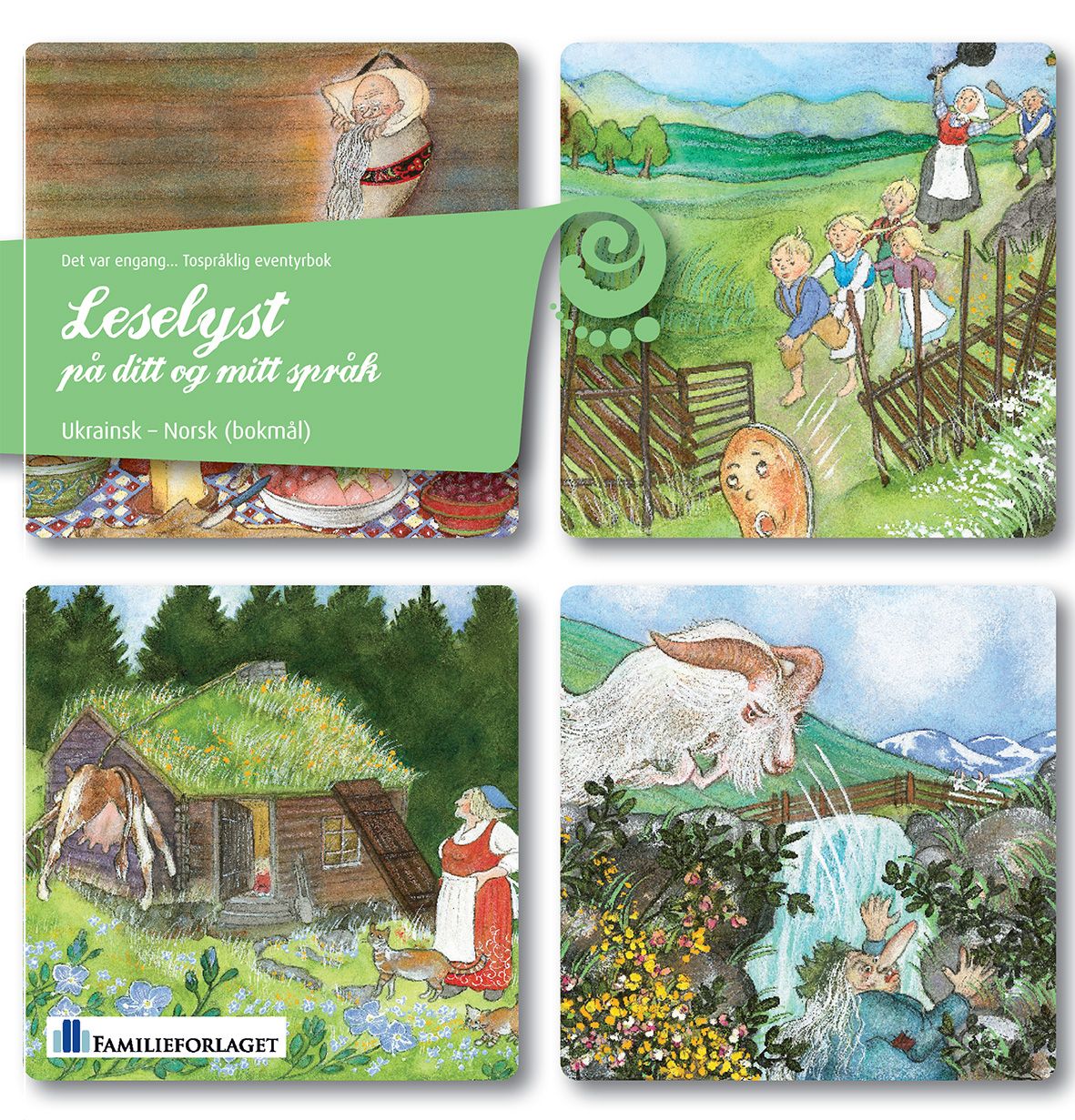 Fire av eventyrene til Asbjørnsen og Moe er med i denne samlingen med tospråklige eventyr: Mannen som skulle stelle hjemme, Sjuende far i huset, De tre bukkene Bruse, Pannekaka.