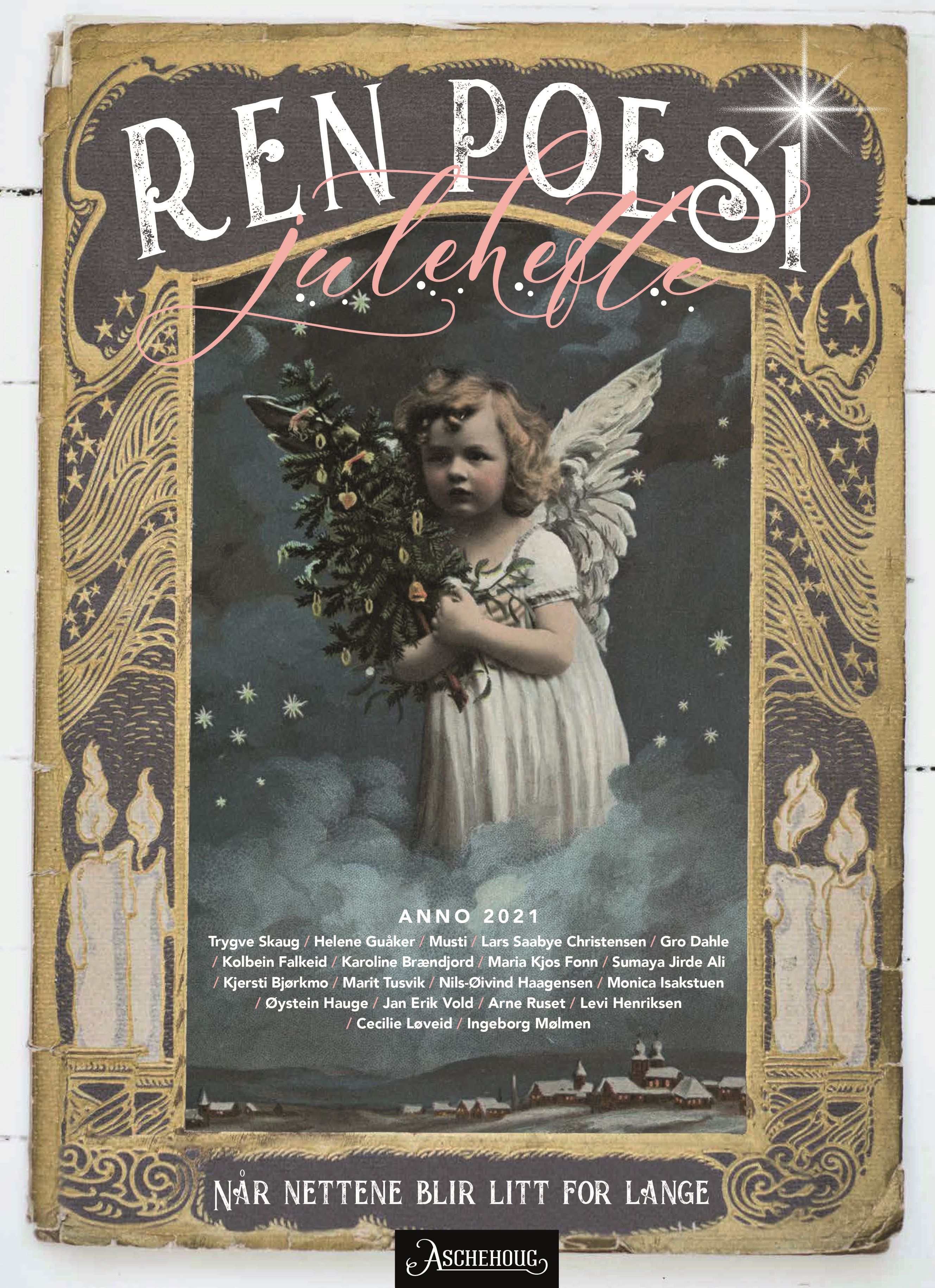 Med sitt poetiske skråblikk har Juleheftet Når nettene blir litt for lange fra Ren Poesi og Aschehoug, etablert seg som et av de mest populære juleheftene. Etter enda et annerledes-år blir vi neppe færre som kan kjenne på trangen til å finne støtte i andres bekymring og sårhet. Ja, kanskje trenger vi dette juleheftet mer enn noensinne nettopp i år? Suksessen til Ellen Wisløffs Ren Poesi på Instagram vitner i alle fall om at vi er mange som kan synes at nettene blir litt for lange. Dette juleheftet sørger for såre, mollstemte, håpefulle, smårare tekster - både dikt og prosa - fra Norges beste forfattere. Felles for dem alle er en evne til å treffe oss der vi kjenner det aller mest. I årets hefte kan du lese tekster av blant andre Lars Saabye Christensen - som har skrevet kalenderdiktet i år - Monica Isakstuen, Levi Henriksen, Maria Kjos Fonn, Karoline Brændjord, Nils-Øivind Haagensen, Gro Dahle og mange flere. Heftet er vakkert illustrert av stylist Tone Kroken og designer Inga Jeanette Rubach.