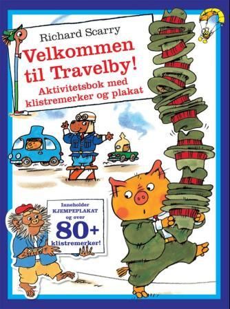 Bli med inn i Richard Scarrys frodige univers! Denne boken inneholder morsomme, lærerike og underholdende aktiviteter for barn. Bli med til Travelby og se alt det rare som hender der! Boken kommer med mer enn 80 ulike klistremerker og en stor plakat.