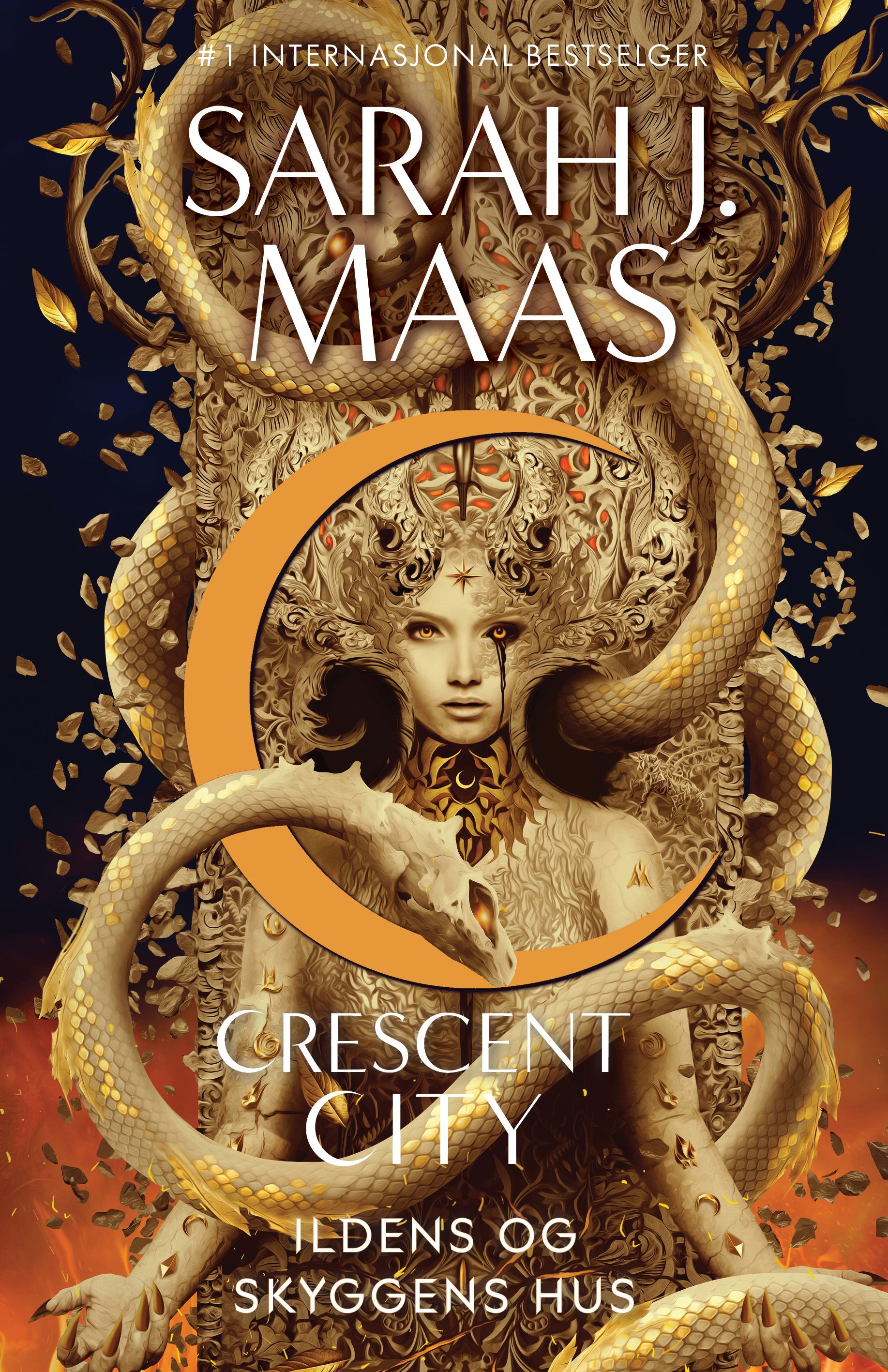 EN VERDEN I MØRKE. EN BRENNENDE GNIST. EN FLOM AV STJERNER.Bryce Quinlan er strandet i en fremmed verden. Hun må bruke all sin kløkt for å finne veien hjem og tilbake til alt hun elsker. Men det er lettere sagt enn gjort når hun ikke aner hvem hun kan stole på.Samtidig er Hunt Athalar tilbake i asterienes fangehull, fratatt friheten og lykken han har kjempet så hardt for. Han har ingen anelse om hva som har skjedd med Bryce, og inntil han klarer å slippe unna asterienes lenker, er han bokstavelig talt bundet på hender og føtter.I Ildens og skyggens hus, den tredje boken i Crescent City-serien, står Midgard på randen av kollaps, og verdens skjebne hviler på et håp om opprør. Men kampen for overlevelse, frihet og kjærlighet kan koste Bryce og Hunt alt de har.