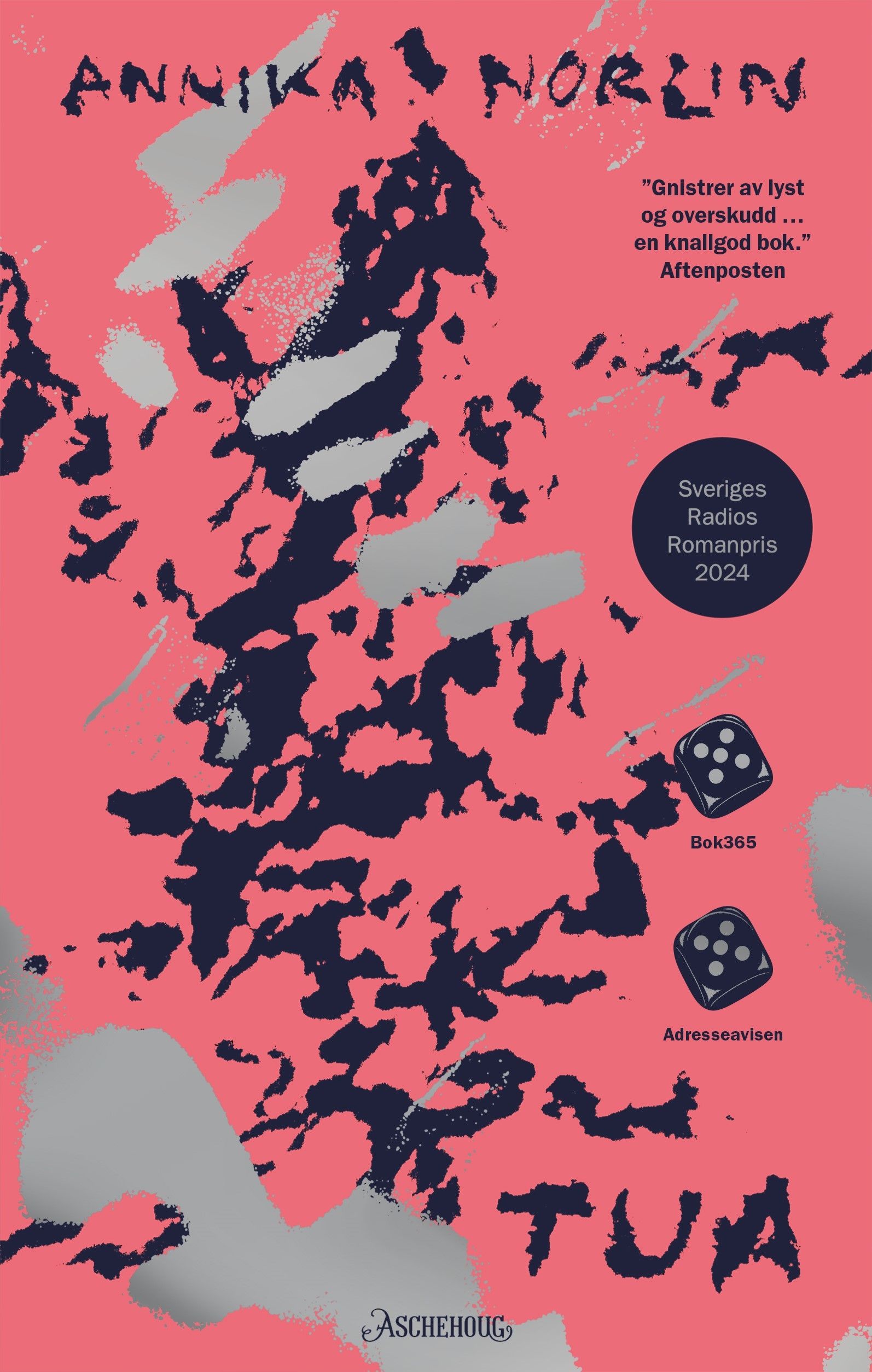 Hva er det som skjer nede ved vannet? Emelie har rømt til skogs for å slippe unna livet i byen. Plutselig oppdager hun en gruppe mennesker. Det er syv av dem, hver med sine oppgaver. En av dem var her først og startet det hele. En annen er så handlekraftig at hun har sittet i fengsel for drap. En av dem, den yngste, holder seg alltid litt unna de andre, Stakkars Jævelen. Og så er det Sara, først og fremst er det nok henne. Alfahunnen. Tua skildrer en gruppe mennesker utenfor samfunnet. Hvordan havnet de der? Og hva skjer når en fremmed dukker opp og truer alt? Annika Norlins debutroman er en drivende og morsom, mørk og rørende fortelling om kjærligheten og om den uforståelige makten vi mennesker har over hverandre. Boka vant Sveriges Radios Romanpris 2024 og er en av Sveriges bestselgende romaner de siste årene. «Annika Norlin skriver smart og varmt om fellesskap og utenforskap. Et helt særegent fortellertalent. (...) ...den vrimler av snurrige ideer, lun humor og et persongalleri å bli skikkelig glad i. Dette er et nydelig bekjentskap å ta med seg inn i januarmørket. (...) Det er godt å være i denne boken. Annika Nordin skriver klokt - og ofte vittig - om makt og avmakt, om hvordan vi påvirkes av det vi bærer med oss og formes av dem vi har rundt oss. (...) «Tua» kunne fort blitt en fiks idéroman om natur vs. byliv, kollektivisme vs. individualisme, hvilepuls vs. hamsterhjul og så videre. Det som gjør den til en langt rikere tekst, skyldes Norlins særegne omsorgsevne for personene sine. De blir aldri pappfigurer, de snakker med helt egne stemmer. Og jeg bryr meg like mye om hver og en av dem. Det er imponerende godt gjort.» Ellen Sofie Lauritzen, Dagens Næringsliv «De ulike personlighetene konstitueres gjennom en usedvanlig gjennomtenkt språkbruk. Både i dialogene og estetisk. (...) jeg rives med av nysgjerrighet på hvordan det går med den enkelte.» Vigdis Moe Skarstein, Adresseavisen (Terningkast 5) «Det føles godt å bli omfavnet av Annika Norlins fortellerstemme. (...) Det er lett å bli forført av Annika Norlins originale fortelling. Kvaliteten ligger i en sterk språkfølelse og forfatterens evne til å tegne opp karakterer med troverdighet og innlevelse. Hun imponerer med stor variasjon og stor presisjon i språket. Det må nevnes at den kompetente Trude Marstein har gjort en fin oversetterjobb. (...) ... en original, heftig roman som nærmest suger leseren inn i teksten. Her er fine situasjoner og dialoger og en omsorgsfull betraktning av karakterer og relasjoner. Bokas karakterer følges gjennom mange år, og det gir dybde og innsikt. Det er fristende å bruke ordet menneskekjærlig om Norlins «Tua». (...) Det er driv og spenning i denne fortellingen.» Turid Larsen, Dagsavisen «Debutromanen til det svenske multitalentet Annika Norlin gnistrer av lyst og overskudd. (...) en knallgod bok som vekker minner om barndommens uforfalskede leseglede. (...) Det som gjør romanen ekstraordinær, er likevel forfatterens store omsorg og kjærlighet for personene hun skriver om. Alle de åtte karakterene har egenverdi, alle kaller på leserens sympati og oppmerksomhet. Det er skikkelig godt gjort. (...) Annika Norlin har alt som skal til for å få publikum til å glemme verden rundt seg og hengi seg til leselystens gleder.» Anne Merethe K. Prinos, Aftenposten «Tua er en frodig fortelling som viser at Annika Norlin mestrer balansegangen mellom alvor og humor, mørke og lys.» Leif Gjerstad, Bok365 (Terningkast 5) «Det er grunn til å ta den skakke, brokete gjengen i Annika Norlins debutroman på stort alvor. (...) Det er en omsorgsfull og varsom skildring av en gjeng misfits som både gjør rett og feil, som er kloke og dumme, teite, rare, irriterende og kjærlige, akkurat som de fleste av oss som enn så lenge klamrer oss fast i det såkalte moderne livet.» Hanne Kristin Wolden, Klassekampen «Annika Norlins kollektivroman er suggererande lesing. (...) ... ein underhaldande roman med mykje humor. Først og fremst er boka drivande godt fortald. (...) Norlin har ei sikker hand om handling og karakterar. Lesaren blir driven vidare frå side til side. Karakterane er sære, men blir aldri karikaturar. Kanskje er spenninga og dei originale individa den største gleda ved å lese Tua. Men romanen stiller også relevante spørsmål ved kva som skal til for å leve eit godt liv.» Hilde Vesaas, Dag og Tid
